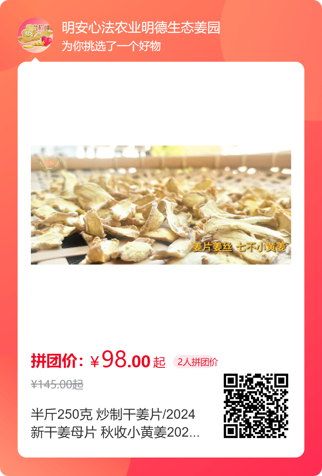 新春礼包二 新春礼包二 七不烘烤干姜片+自选 各种低价常备外内热源(亏本补贴)