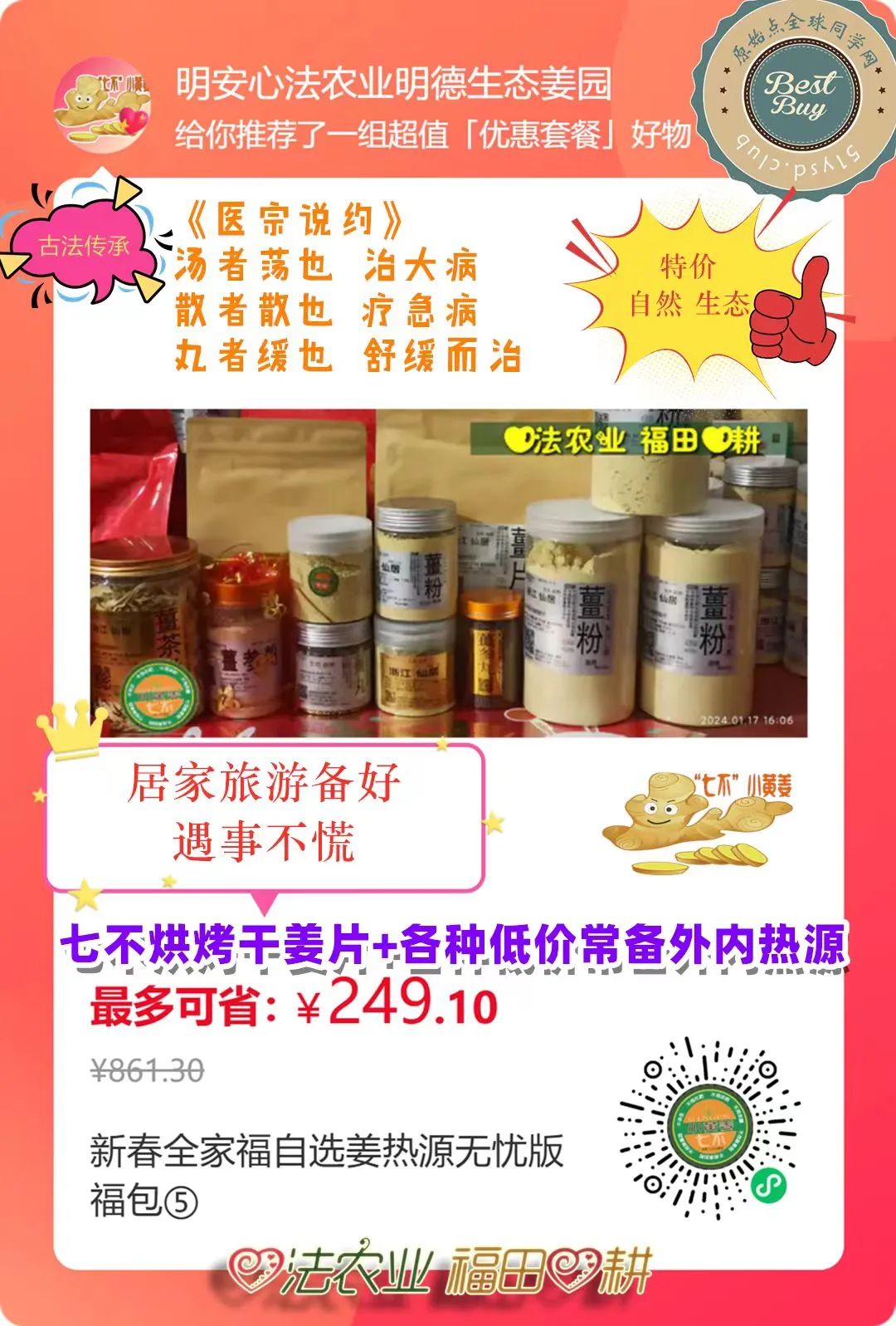 七不姜片、姜粉、姜丸套装,不仅是自家享用的理想选择,更是馈赠亲友的佳品。传递健康与温暖,在这个春节,让七不姜陪伴您和家人共度温馨时刻。🎉