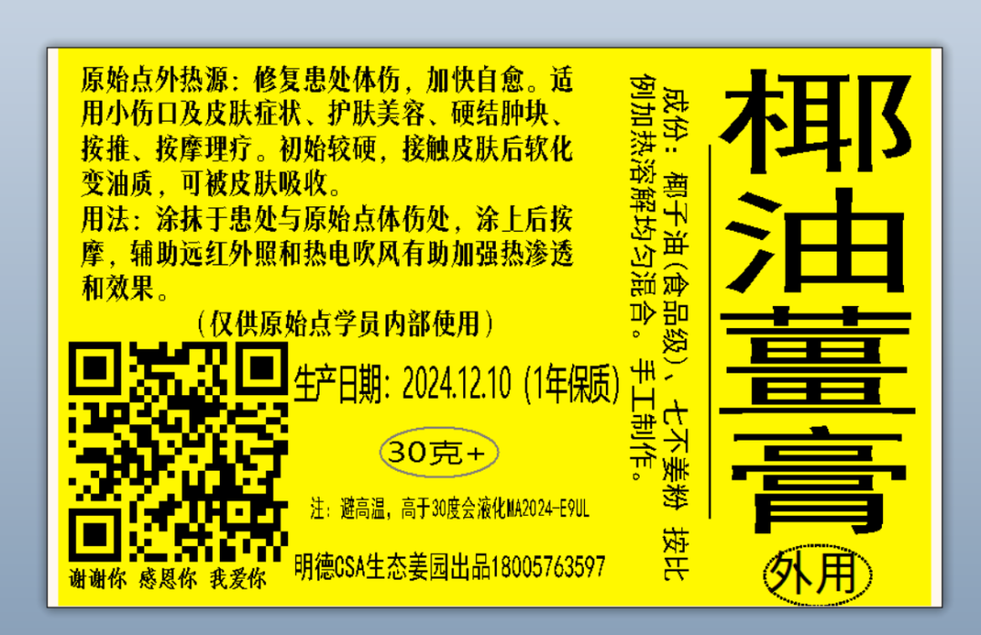 - **内热源**:除了外用,姜粉泥也可以内服,其内服能力被认为可以使身体修成正果,百毒不侵。通过选择品质好的有机姜制作姜粉泥后内服,可以在内热源领域达到极致效果,以修复体伤。